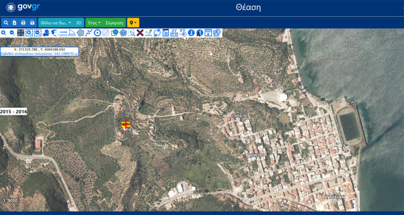 It is is situated in a sparsely populated area (with villas), has access from an asphalt road and offers unobstructed views of mountains, greenery and the blue waters of the Laconian Gulf.