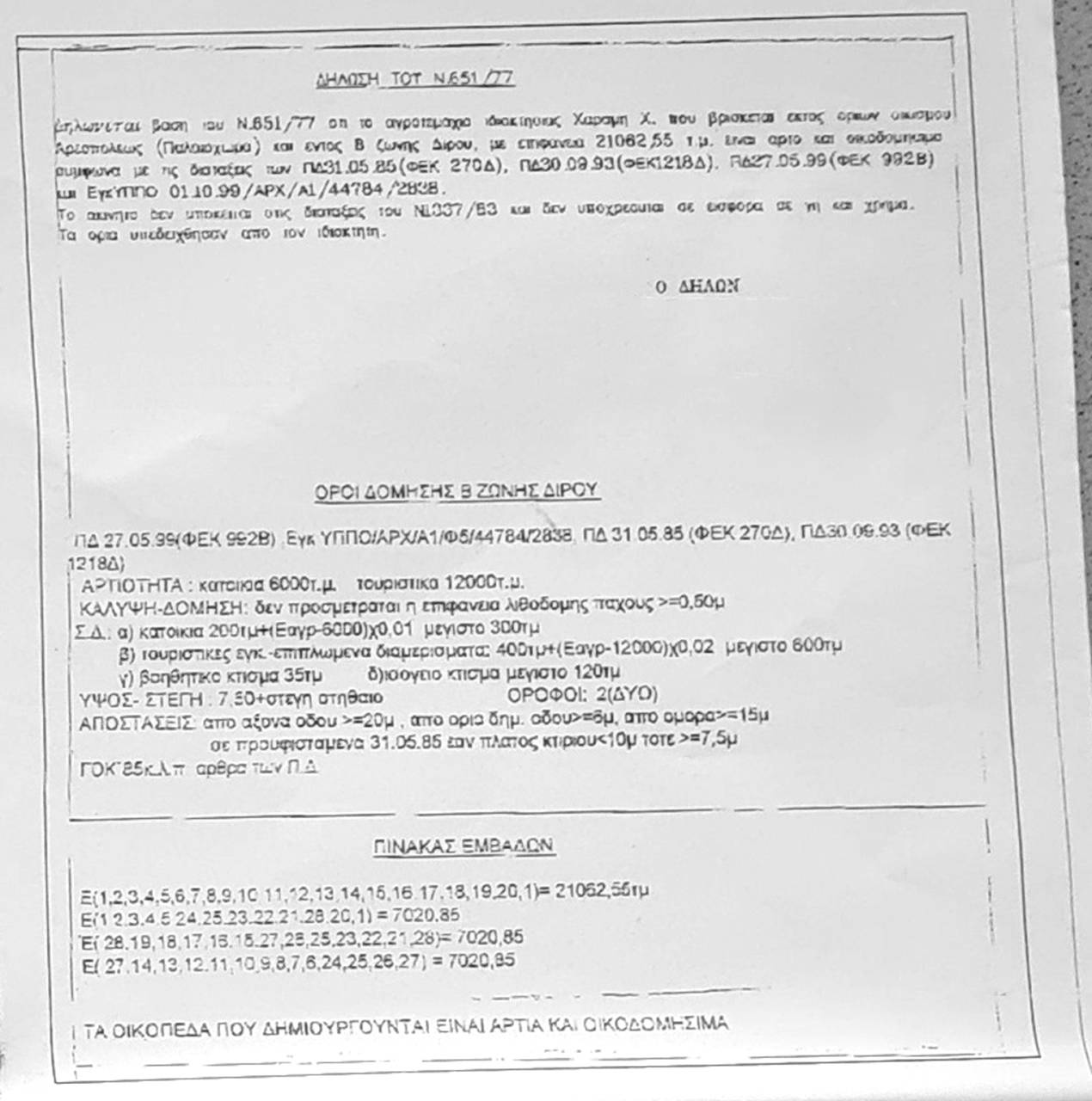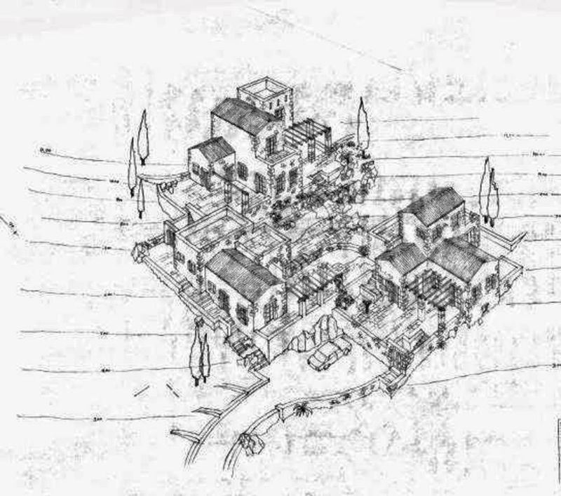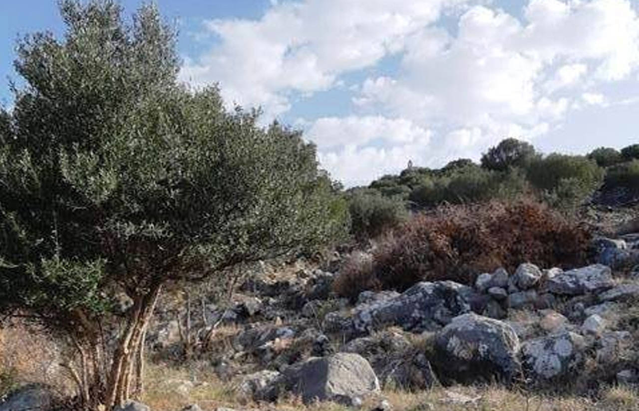 The area is divided into three individual plots of 7,020 sqm each, which can also be purchased separately. One of these pieces comes with a ready building permit for three residential stone houses on it with a total of 205 sqm.