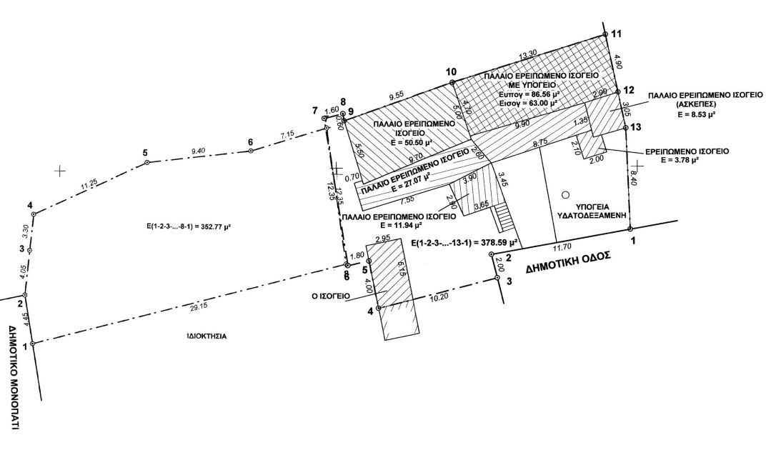 The building complex is located on a plot of land that measures 378.5 square meters.