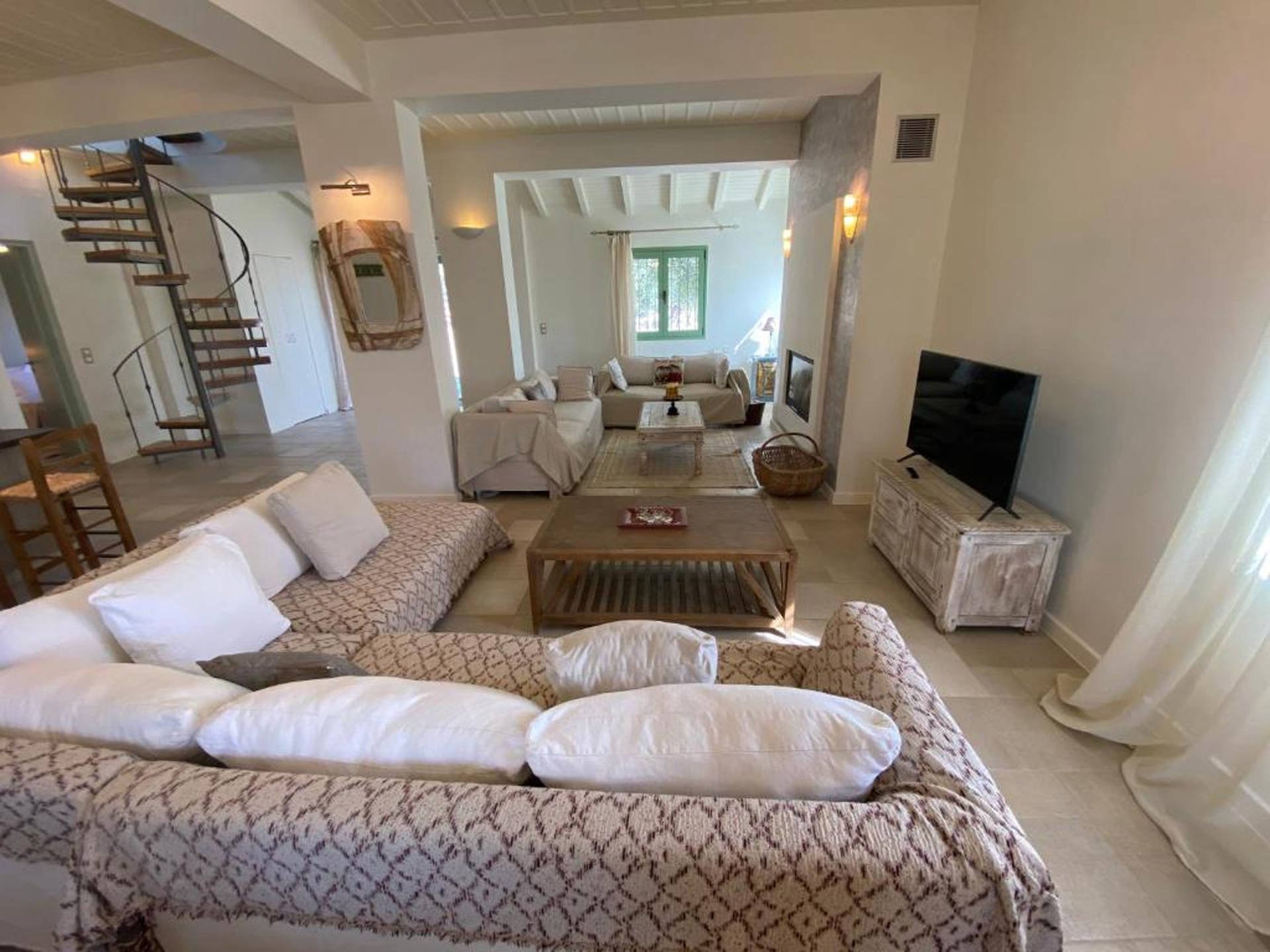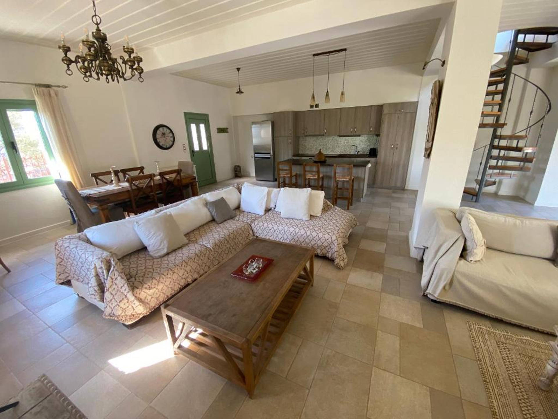 Ground floor 115 sq m with an open living room and open-plan kitchen, dining room, fireplace, a/c, Wifi Smart TV 4 K, Wi-Fi internet speed 50 and Cosmote TV. Direct access from the living room to a large, landscaped garden with a pool, BBQ, outdoor shower and outdoor furniture. The living room has a Wi-Fi Smart TV, Wi-Fi internet speed of 50 via Cosmote TV, a/c and an Edil Kamin pellet stove with remote control.